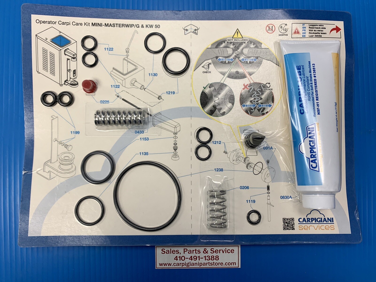 Carpigiani Parts Coldelite Whipped Cream Machine Tune UP Kit Model KW 50