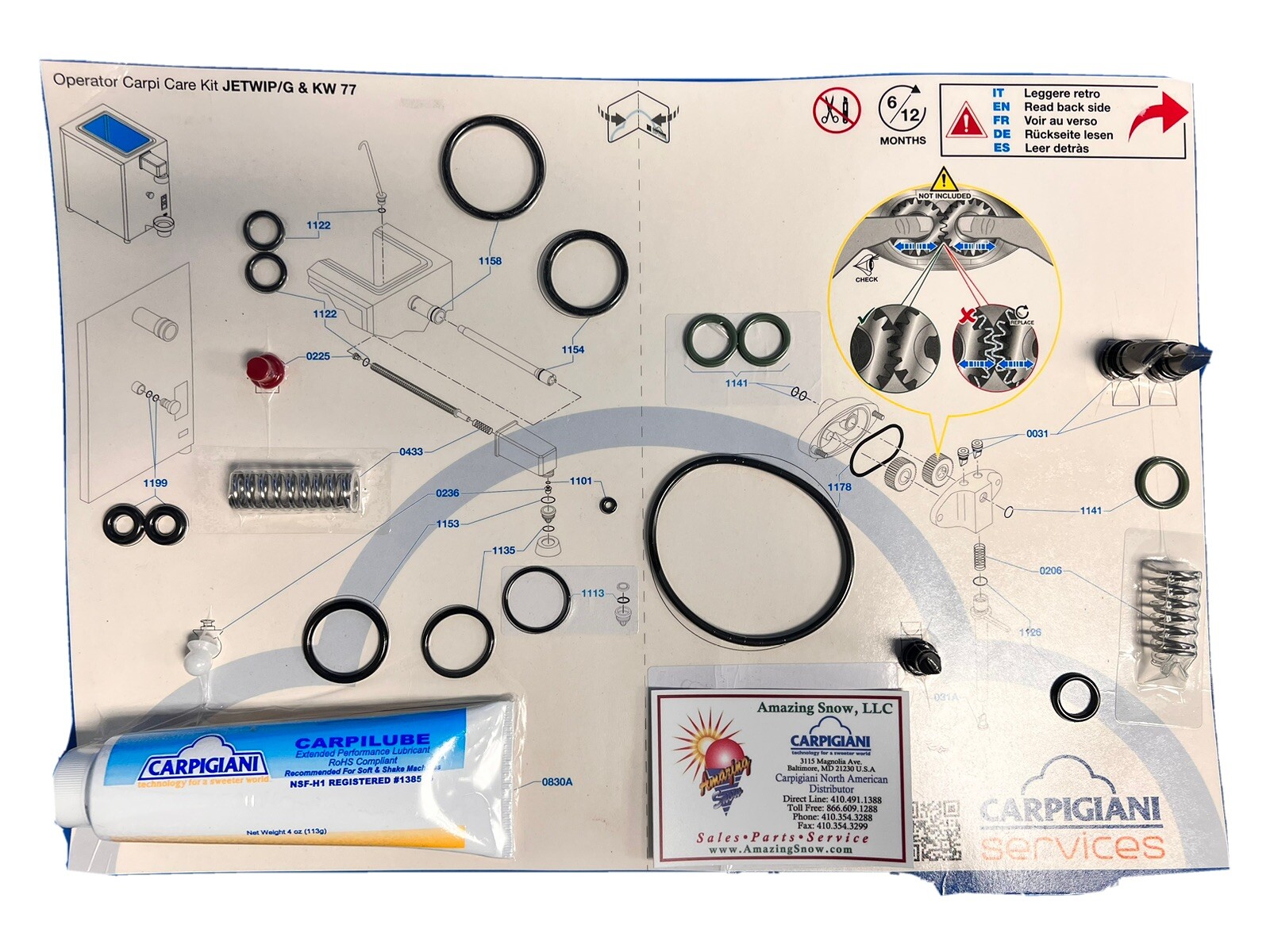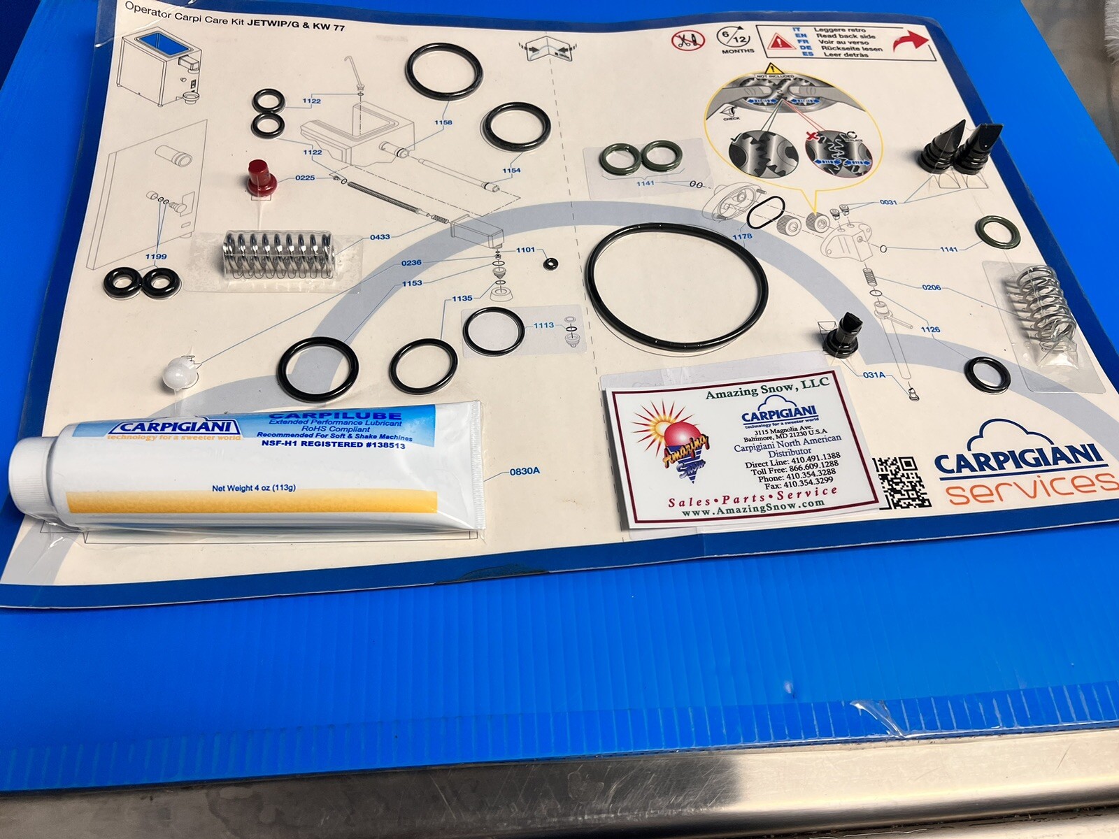 Carpigiani Parts Coldelite Whipped Cream Machine Tune UP Kit Model KW 77