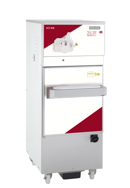 401 Bib is the floor standing machine for soft gelato, soft ice cream and frozen yogurt.The electronic system grants a perfect structure, providing an instant and accurate consistency control.The patented peristaltic pump grants high productivity and easy manteinance; it allows to treat any kind of mix, even the dense ones and with small pieces like seeds and grains.The Bag-in-Box option allows to connect the pump directly to the bag filled with liquid mix.