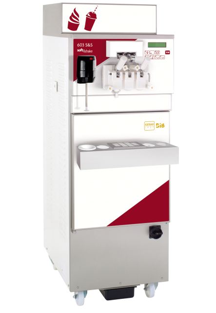 603 Soft and Shake is the floor standing machine for soft gelato, soft ice cream, shake and frozen yogurt.Thanks to the electronic system for consistency control, it always grants a perfect structure.The patented peristaltic pump grants high productivity and easy maintenance; it allows to treat any kind of mix, even the dense ones and with small pieces like seeds and grains.With the Bag-in-Box option, it is possible to connect the pump directly to the bag filled with liquid mix.
